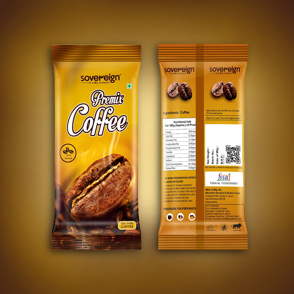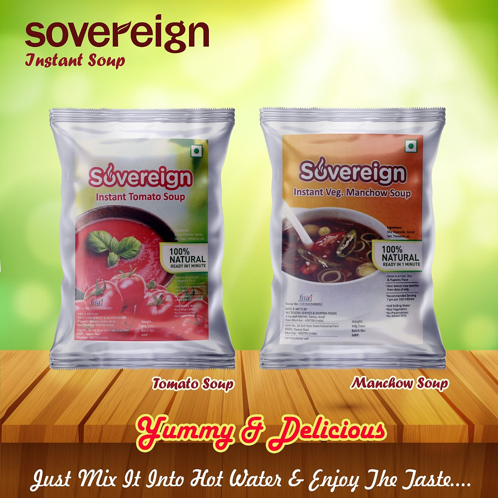 Sovereign Foods is a premier manufacturer based in Navi Mumbai, dedicated to creating high-quality tea premixes, coffee premixes, and soup premixes. We pride ourselves on delivering exceptional beverage and food solutions, ensuring all our products meet the highest standards of taste and quality for diverse clientele.